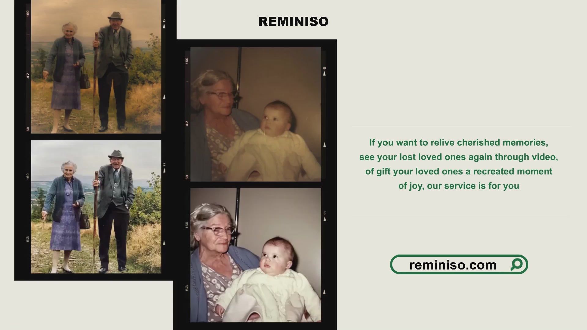 Old photos hold memories too precious to fade.At Reminiso.com, we Bring Your Memories Back to Life — turning them into vibrant videos that let your loved ones relive beautiful moments once forgotten.Because some memories deserve to live again.
